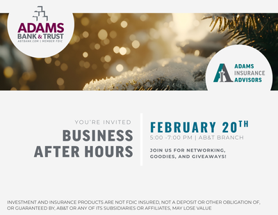 Business After Hours Adams Bank & Trust / Adams Insurance Advisors 121 S Jeffers St North Platte, Ne.